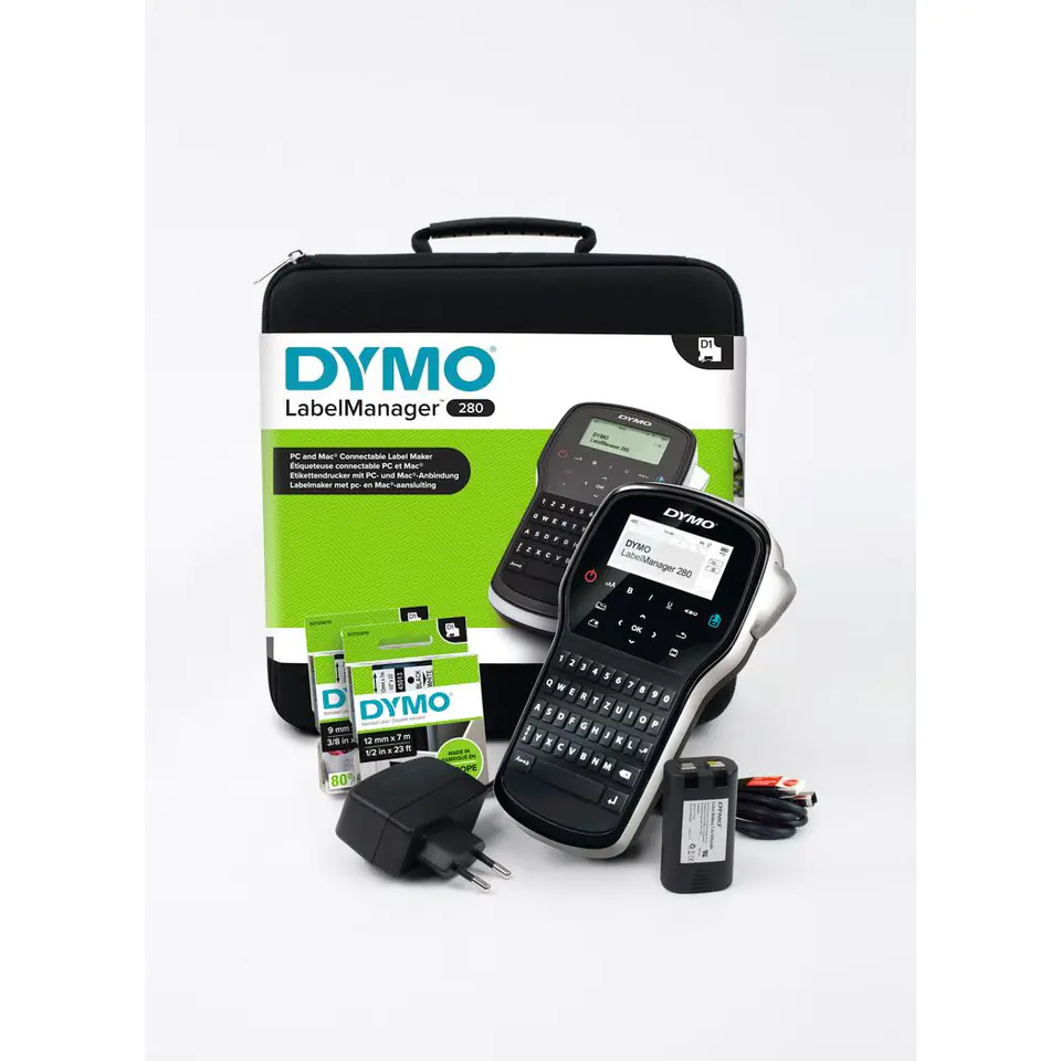 Simply connect it to your PC or Mac* and you can personalize labels with fonts and graphics from your computer. Thanks to the large QWERTZ keyboard, typing text is simple, fast and convenient. Multifunctional quick format buttons allow you to quickly edit the text to print on the label. The problem of the costs of purchase and disposal of disposable batteries does not exist - thanks to battery power, all you have to do is charge the device, enter the content of the label and print it. The LabelManager 280 prints 50% faster than other DYMO label printers. The printer supports DYMO D1 labels in widths of 6, 9, 12 mm in a wide variety of colors - these labels are ideal for marking document folders, shelves, devices and much more.