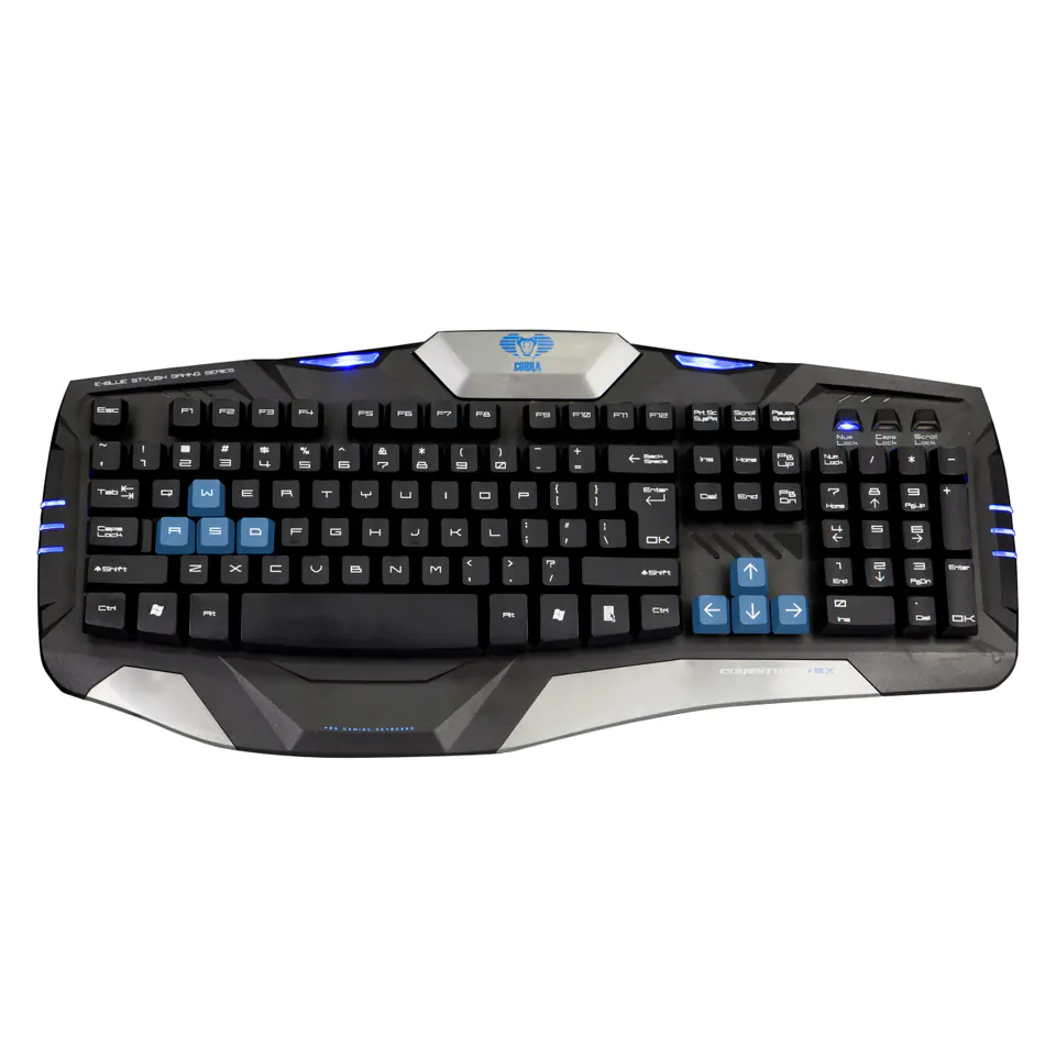 Stylish blue LED backlighting on the side edges of the keyboard and on both sides of the COBRA sign provides an extraordinary look.