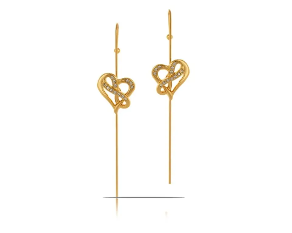 Unique earmuffs with hearts shine with the glow of Swarovski crystals. Length 7.1cm, width 1.5cm, thickness 0.4cm. Gold-plated earmuffs.