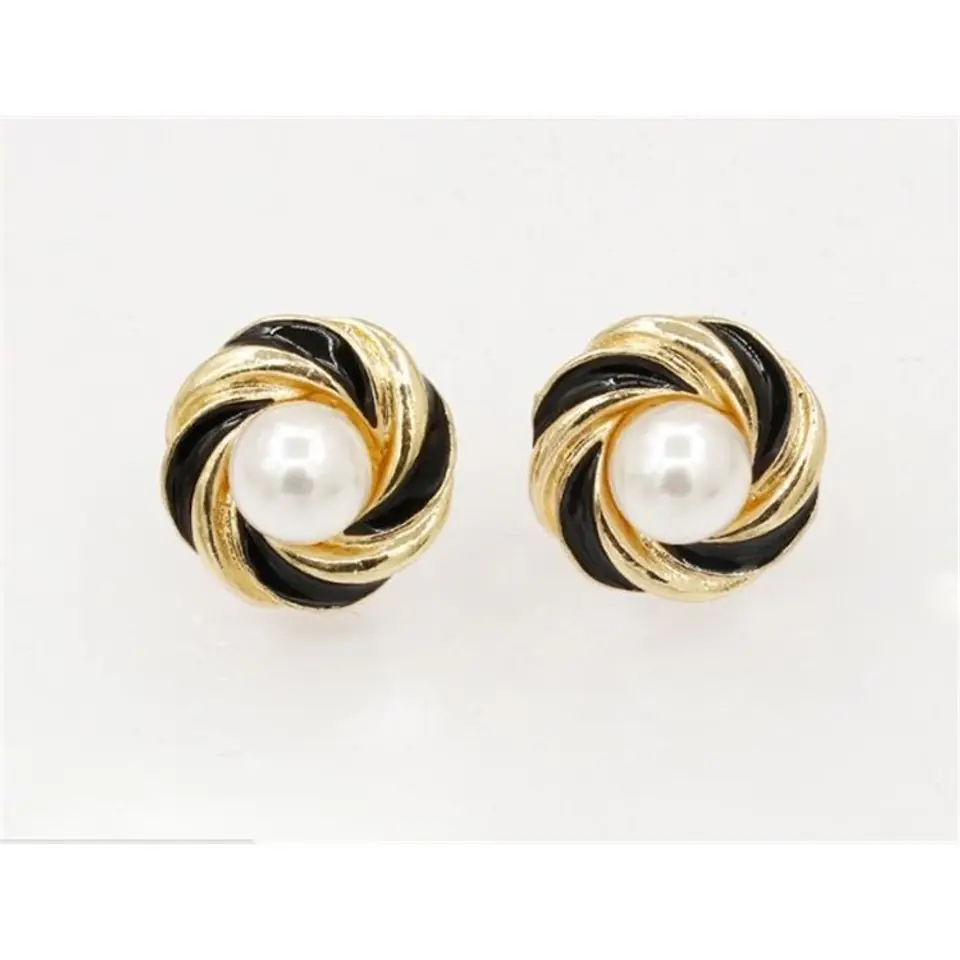 EARRINGS BEADED SWIRLS GOLD WITH BLACK K517