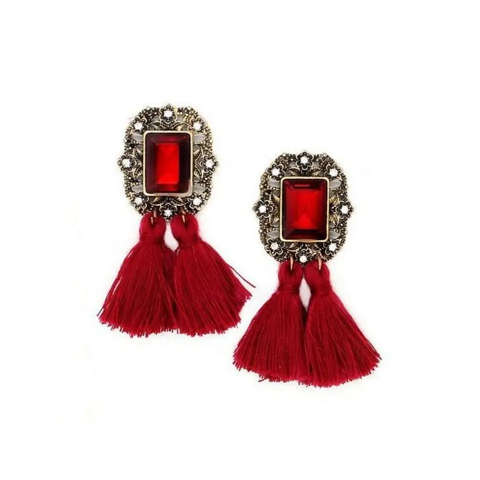 Tassel earrings are the latest trend. They look beautiful. They fit both elegant dresses as well as jackets and jackets. The combination of crystal and tassel creates a spectacular combination. Dimensions: