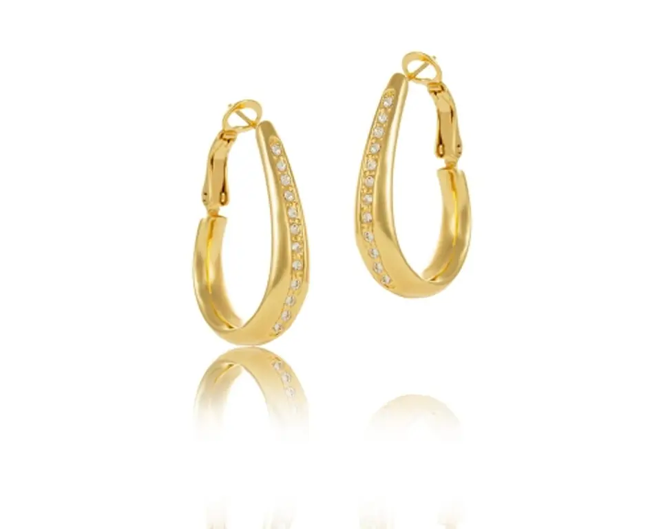 Earring with Swarovski crystals - thicker semicircle. Length 3.9cm, width 0.7cm, thickness 0.5cm. Gold-plated earrings.