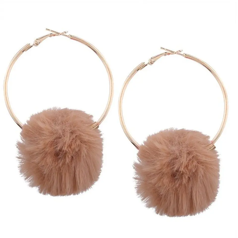 EARRINGS WHEELS POMPON BEIGE K632BEZ
