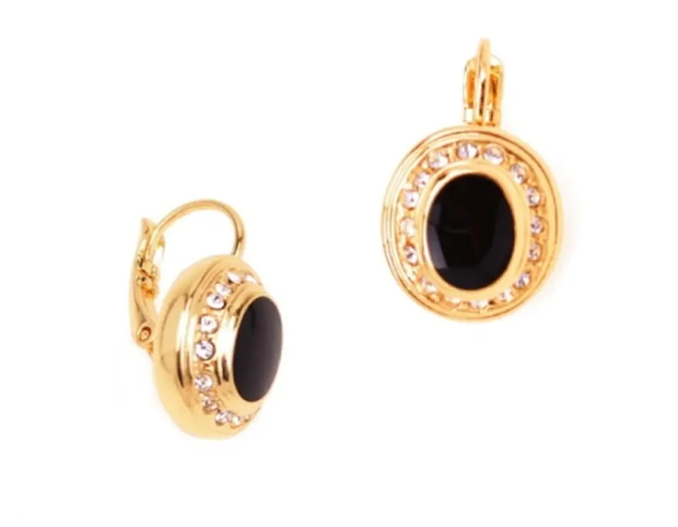 Classic earrings with Swarovski crystals and with a black element. Length 2cm, width 1.3cm, thickness 0.6cm. Gold-plated earrings.
