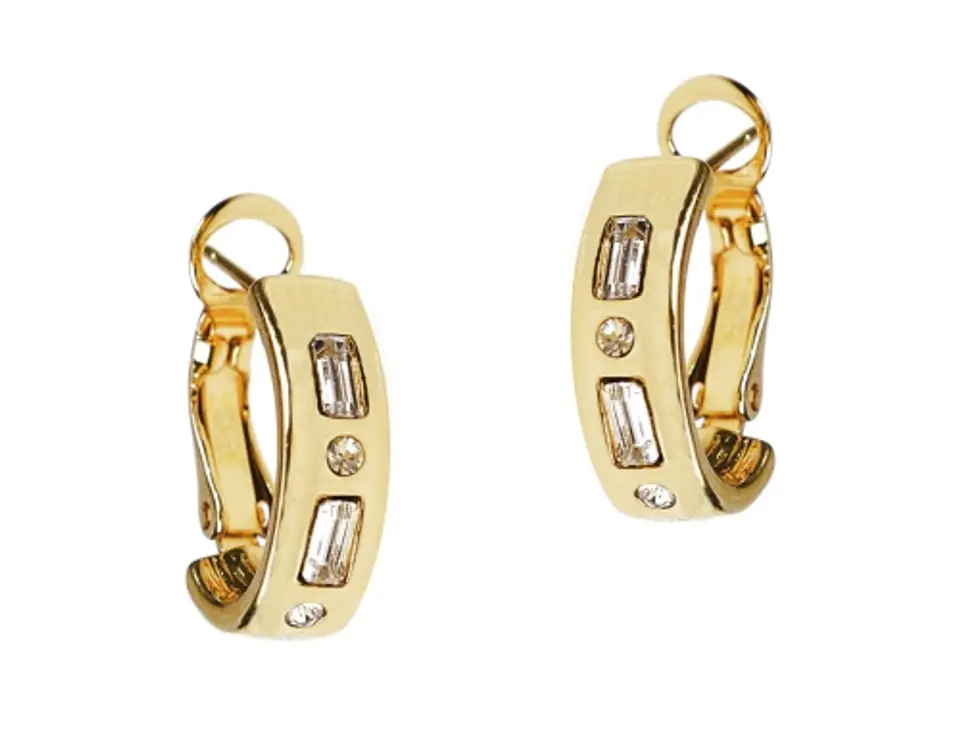 Classic earrings with rhinestones and rhinestones for every woman. Earring dimensions: length 1.8cm, width 1.4cm, thickness 0.5cm. Gold-plated earrings.