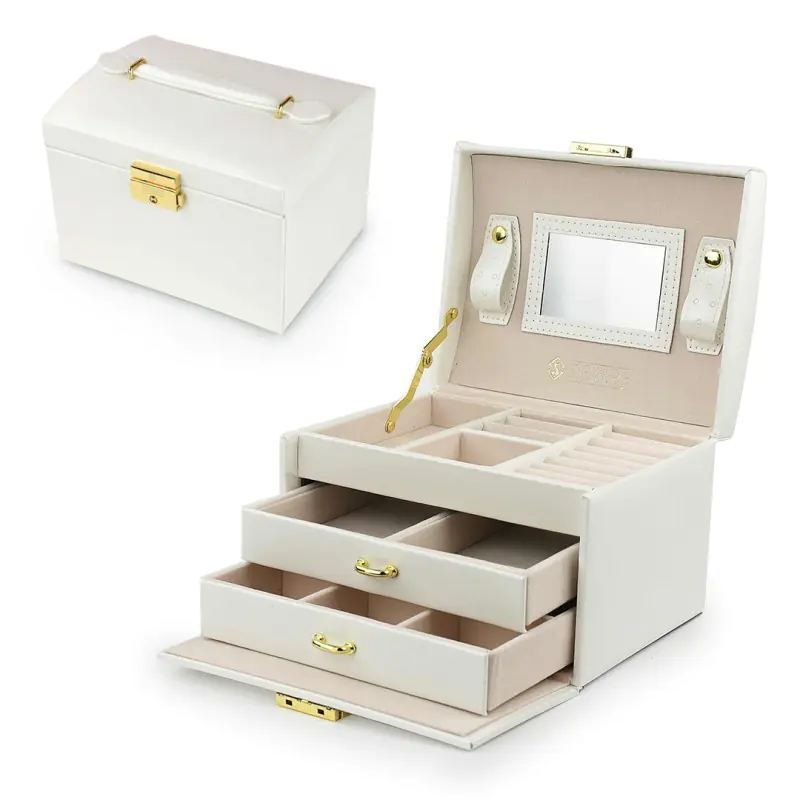 - has compartments for: rings, earrings, necklaces and much more.