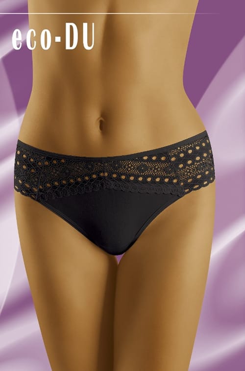 Cotton panties with a charming, punched, lace back. Classic midi cut. The waist is also decorated. Composition: 90% cotton, 7% elastane, 3% polyamide.