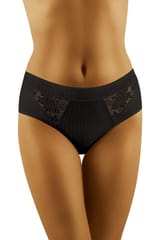 Captivating with their design, very feminine briefs with an elevated condition, recommended for women who appreciate the beauty of every detail. A perfect trio of subtle, small stripes, stylish, floral lace and smooth, pleasant to the touch knitwear visible on the sides of the underwear. Flexible, from the latest collection of the manufacturer Wol-bar. Composition: 90% cotton, 7% elastane, 3% polyamide.