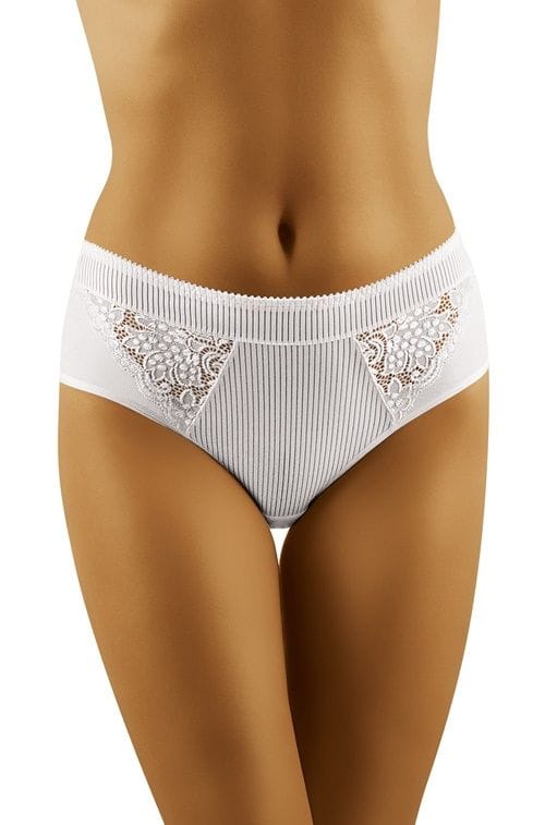 Captivating with their design, very feminine briefs with an elevated condition, recommended for women who appreciate the beauty of every detail. A perfect trio of subtle, small stripes, stylish, floral lace and smooth, pleasant to the touch knitwear visible on the sides of the underwear. Flexible, from the latest collection of the manufacturer Wol-bar. Composition: 90% cotton, 7% elastane, 3% polyamide.