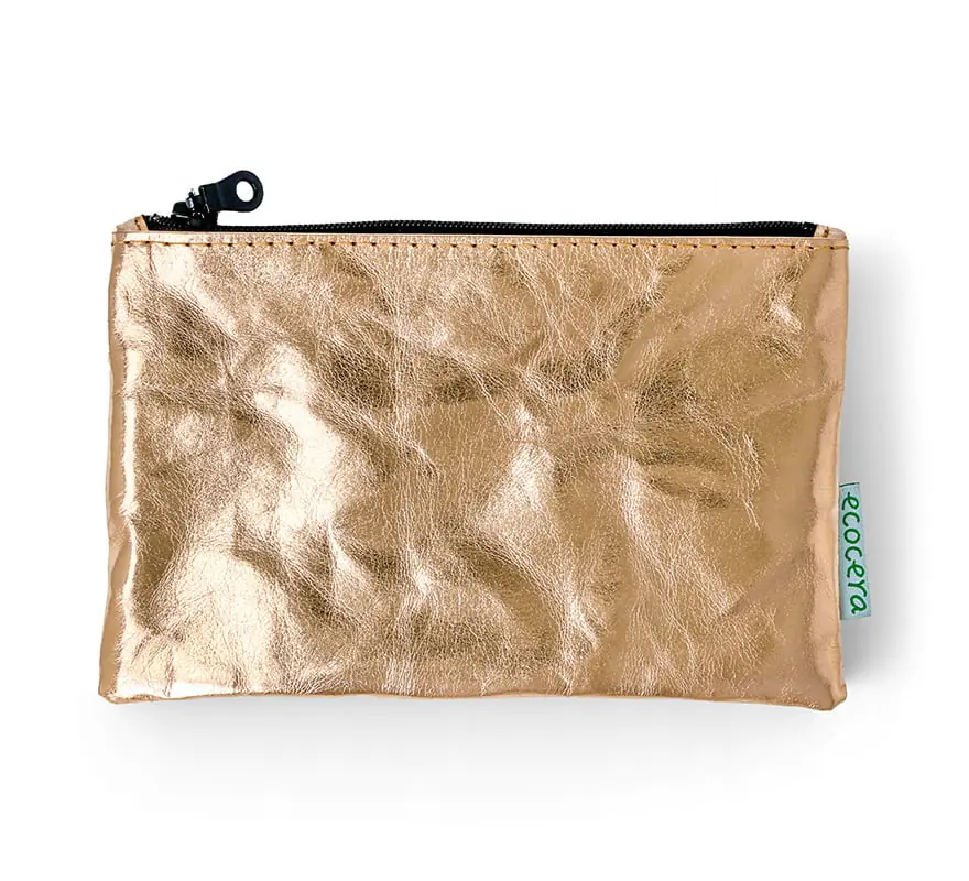 Stylish cosmetic bag in rose gold, zippered. Made of innovative material – paper resistant to tearing and dirt. Thanks to this, it is ideal for storing colorful cosmetics, make-up brushes or hygiene products. The beautician will work both during everyday use and during trips. You can also store keys, glasses and other small things that are often lost in your purse. Dimensions:length – 21 cmheight – 13 cm