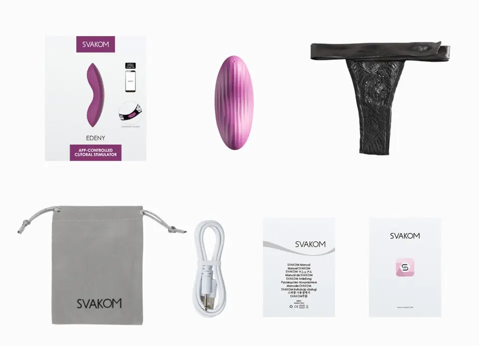 The clitoral stimulator, which can be worn in the included lace panties, provides a quiet and discreet pleasure. The small, easy-to-use vibrator has a gorgeous, ergonomic design that adapts perfectly to the contours of the body. The vibrator is soft and flexible. It also has stimulating grooves. The 11 whisper-quiet vibration modes can be easily controlled via app or Bluetooth – anywhere in the world, anytime, by anyone. USB cable and storage bag included. Vibrator dimensions: 9 x 3.9 x 2.5 cm.Weight 43.8g. Material; silicone, PU. Adjustable panties – size range S–XL. 100% polyester. Charging time 1hTime of use 1hWibrations: 11