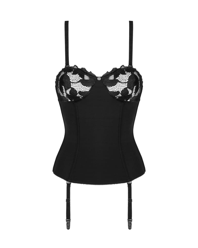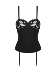 Editya's sensual, black corset is a feminine and full of sex appeal. Soft, slightly translucent bra cups perfectly emphasize the bust, and vertical underwires beautifully draw the shape of the figure. Comfortable fastening along the entire length of the back allows for a perfect fit and adds chic to the whole.