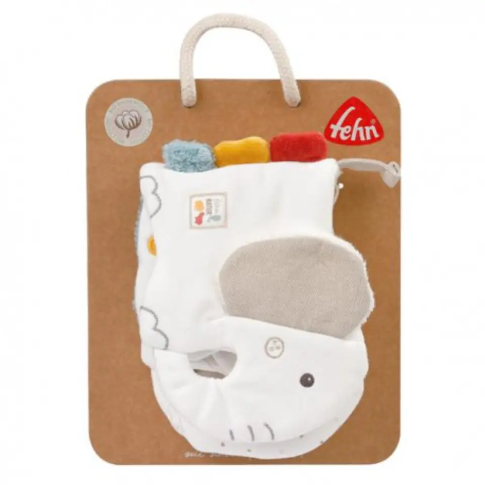 Educational booklet, Elephant, from the collection: Nature The Natura collection combines excellent quality of natural materials with unique design, consistently focuses on ecology, The products from this collection use pure, certified organic cotton as the top material, The filling consists of PLA fibers, All materials used in toys are of natural origin, The only plastics used in mascots are hidden inside and inaccessible to children, A charming elephant, a dolphin and a hippopotamus invite you to discover, touch and watch interesting motifs and various materials, A soft book takes the child on a journey of discovery full of interesting characters, On the title page we are greeted by a nice Elephant with a soft ear for tearing, On the following pages of the book, the baby discovers, cognizes, stimulates the senses and motor skills, Hidden rattle, rustling paper, mirror, various shapes and surface structures arouse curiosity, educate the sense of touch and give the child a lot of joy, A toy designed for children from the earliest days, stimulating to grasp, shake, squeeze, Indispensable to explore the world, arousing curiosity, in a word - needed always and everywhere, Each page is a new experience for the baby, Touch-friendly materials, Safety mirror, Interactive elements such as mirror, rustling pages, rattle and various textures of the material stimulate the senses, Develops motor and manual skills, Upper material: certified organic cotton, Filling: 100% polyester, Washable at 30°C, Dimensions of the product: 16 cm x 12 cm, Package dimensions: 23 cm x 18 cm x 5 cm, All toys of the German brand FEHN are safe for children from 0+, They are made of the best quality materials, Meet EN71 standards, CE, tested for safety by independent testing institutes, 56099