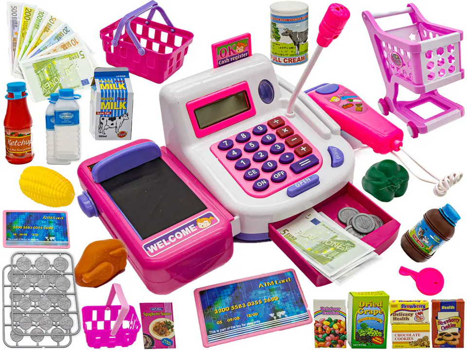 The cash register is a toy with a lot of accessories, thanks to which every child will be able to play in the store, wherever and whenever he wants, and above all through play he will learn how to shop in a real, contemporary store.