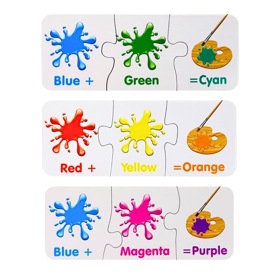 Educational puzzles will be a good exercise for imagination, expand knowledge and practice patience. The whole will pay off in the future in the child. By matching the shapes of the puzzle, he will find out from which combinations of colors each color are made. Each of the colors has a signature in English, thanks to which he will learn the basic words. From all puzzles you can create up to 10 connections.