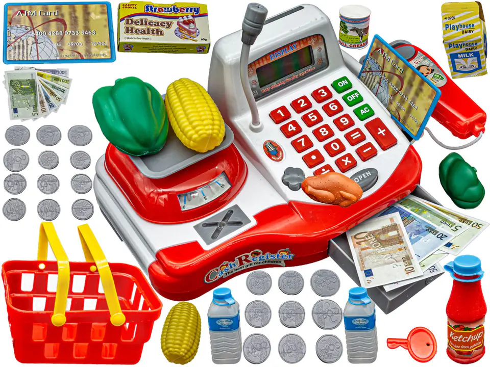 An educational store cash register is a toy with a lot of accessories, thanks to which every child will be able to play in the store, where and whenever he wants, and above all, through play, he will learn how to: