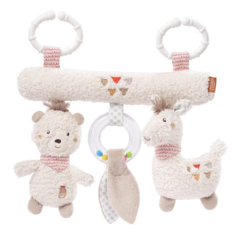 Pendant, educational mascot Trapezoid, from the collection: Peru Toy from Machu Picchu from the Peruvian Andes. Nice Bear Luis with a rattle that stimulates the child's sense of touch and arouses natural curiosity. Charming Lama when pressed, makes a gentle sound that attracts the attention of the child. Two comfortable handles allow the chain to be easily and flexibly attached to the stroller, child seat, playpen and cot. It helps your child explore a fascinating world while traveling or walking. It is made of many, pleasant to the touch, materials. Develops logical thinking, concentration, small motor skills. It arouses curiosity and stimulates the perception of the child. Rustling paper, pipe and rattle trigger the desire to play. To hang on a cot, stroller, baby carrier, etc. Washable. Size: 21 cm. All toys of the German brand FEHN are safe for children from 0 years. They are made of the best quality materials. They meet EN71, CE standards, tested in the institutes "Stiftung Warentest"" or "Ökotest"". 58031