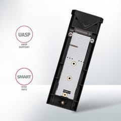 The transmission rate is up to 10Gb/s thanks to the fast USB 3.2 Gen 2 interface. The external M.2 box also supports other modern features e.g. UASP, TRIM and enables reading S.M.A.R.T. disk status monitoring information. Standby support when idle.