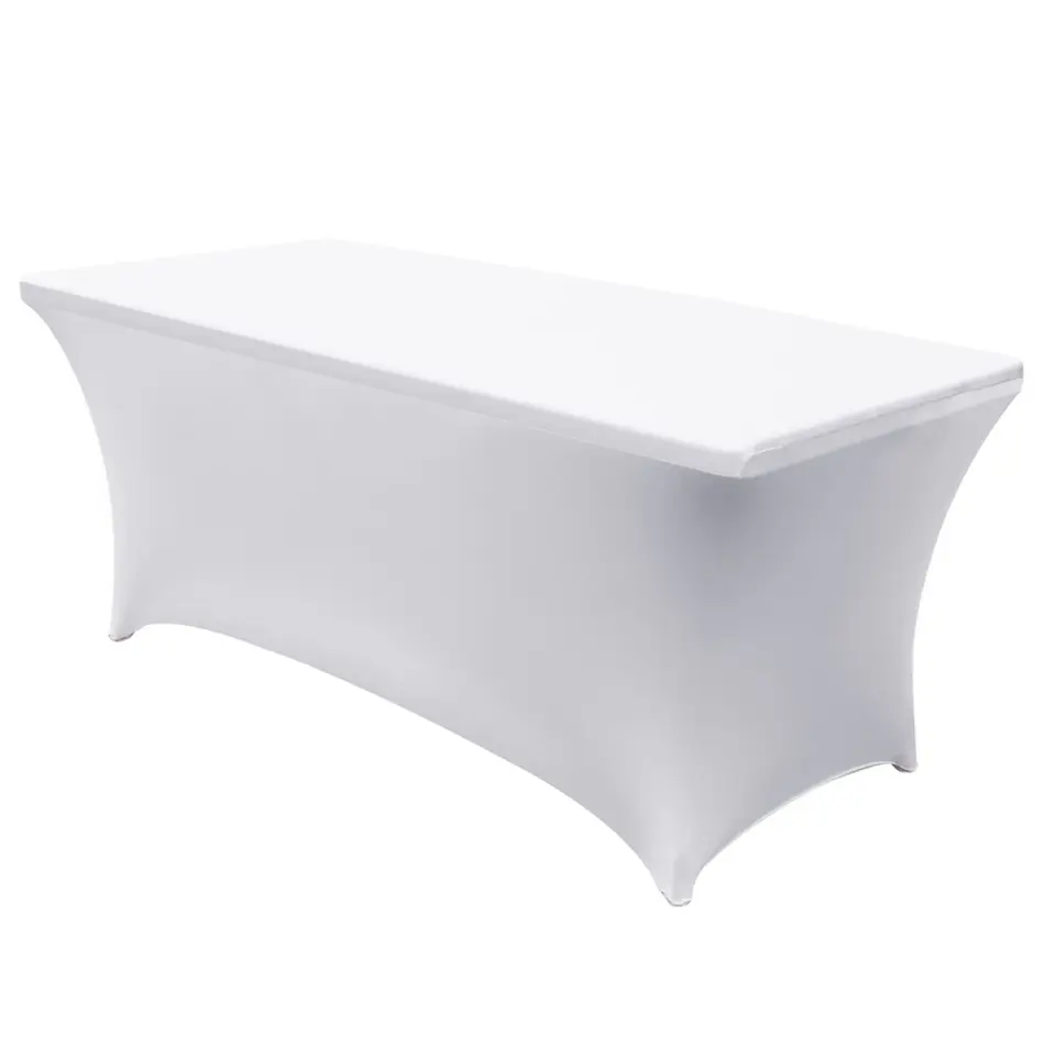 The covers are mainly dedicated to standard catering tables, i.e. 180x75x74cm, but that doesn't mean they can't be put on other tables! Thanks to the elasticity of the material, the covers adjust to many tables, including those that are narrower or wider than the standard ones. The covers are made of a durable but flexible and soft, pleasant-to-touch material - spandex. They are very easy to put on! Simply place the tablecloth on the table top and then pull the tablecloth feet over the table legs, and the cover is ready.
