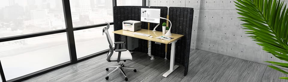 The frame with electric height adjustment is equipped with improved anti-collision technology. This innovative system causes the desk to automatically retract when changing height if it encounters an obstacle in its path. This is a great feature for those who have children or pets that come to your workplace.
