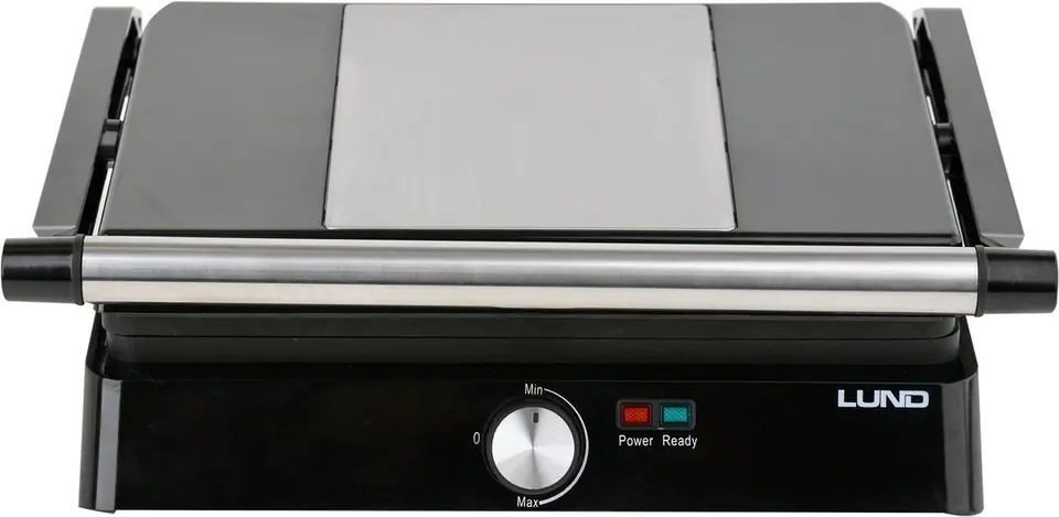 Powerful electric grill designed for quick preparation of meats, fish, vegetables and toast.