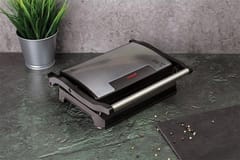 Elegant and modern electric grill from Berlinger Haus from the Black Silver line. It will perfectly fit into the dishes and kitchen accessories of this company. It will allow you to prepare without the addition of fat steaks, sausages, vegetables or fish. We can use it to make toast or hot sandwiches.