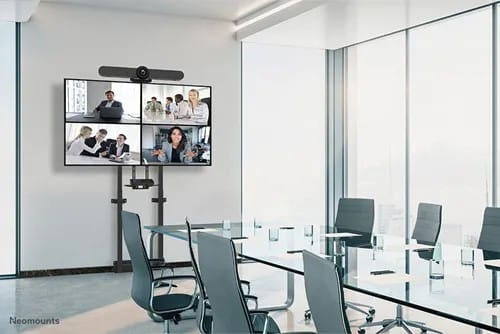 An optional videobar & multimedia kit, the AFL-875BL1, is available, which allows a separate camera shelf and a shelf for multimedia devices to be fitted to the trolley. An adapter for the Logitech Rally Bar (Mini) steering wheel is included. In addition, the multimedia shelf is suitable for mounting a Logitech tap, among others.