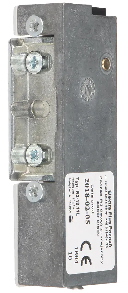 Electromagnetic hitch type R3-12.11L is designed for doors and wickets made of metal sections, to work with a ratchet-latch or ratchet lock