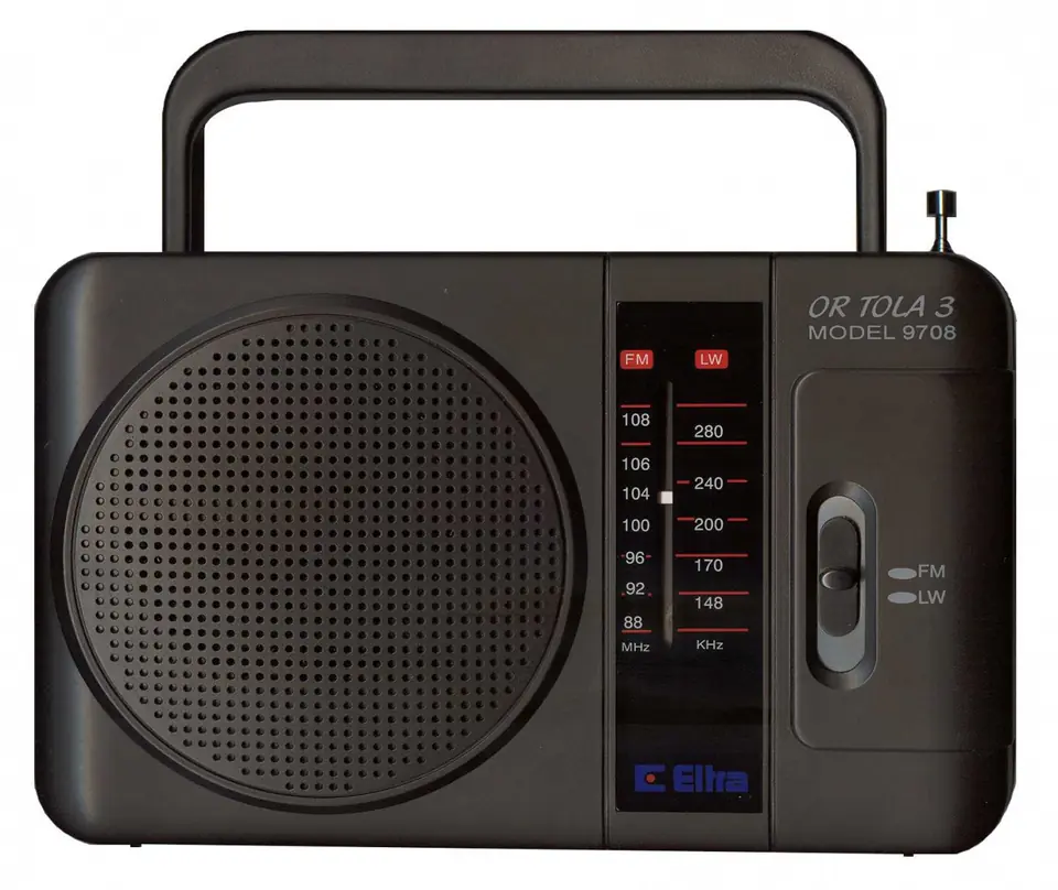 Radio can be powered with 230V or battery. For convenience the radio is equipped with a convenient carrying handle, telescopic antenna and headphone jack.