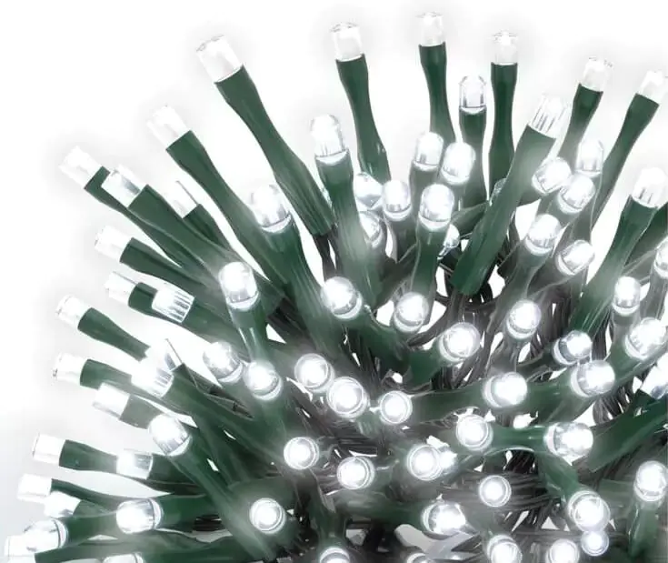 Christmas lights have as many as 50 LEDs glowing in cold white. LED Christmas lights emitting white light usually work better in the interiors of rooms, introducing a cozy and festive atmosphere to them.