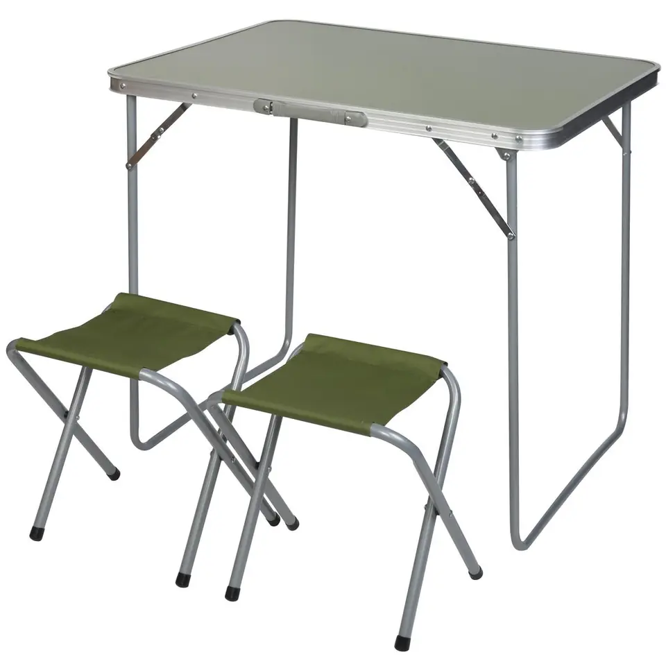 Enero folding camping hiking table 80 x 60 x 70 cm + two chairs green