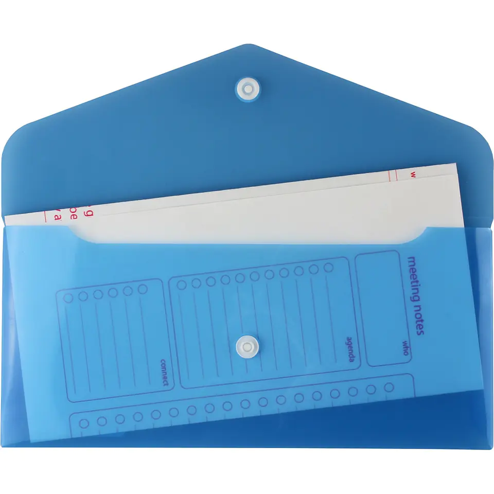 Made of colored transparent PP film; closed with a convenient nap protecting documents against falling out; ideal for segregating and storing documents, notes, etc.;