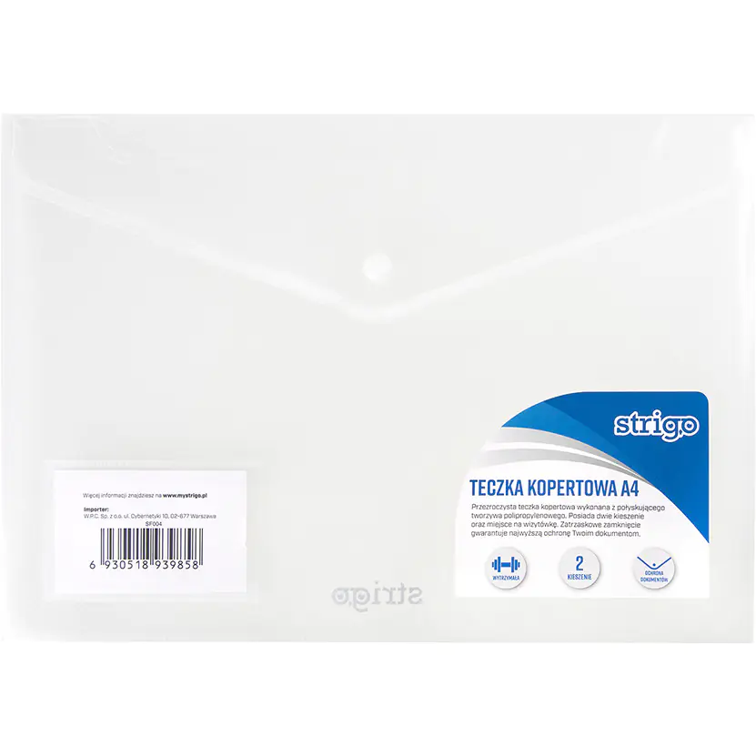 Envelope folder PP A4 horizontal, transparent 2kie. SF004 STRIGO