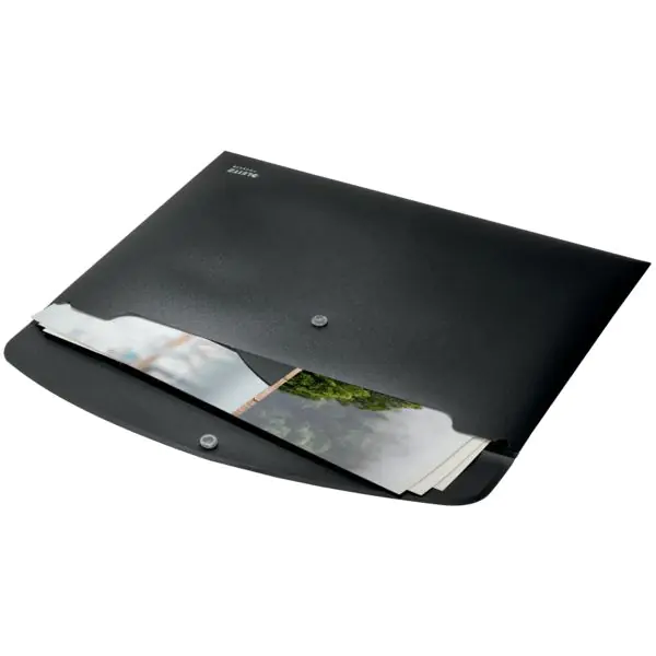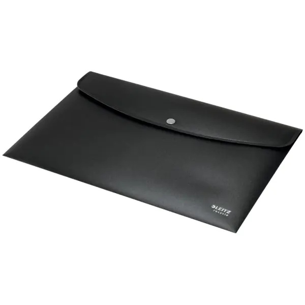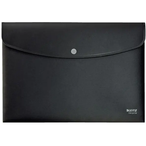 Eye-catching, premium polypropylene envelope briefcase, snap-in to prevent documents from falling out, perfect for everyday use at school, office and home. Made from 80% recycled plastic, climate neutral and 100% recyclable. He is Blue Angel certified. This sturdy briefcase is extremely practical and fits perfectly with other products in the Leitz Recycle collection, which contains modern and eco-friendly office products that look great at home and in the office. With the new eco-friendly Recycle product line from Leitz, you can improve both the office environment and the planet.