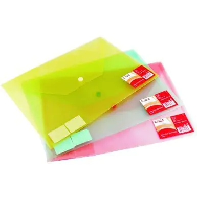 Envelope folder for documents, closed with a snap. Made of durable, translucent plastic in various colors. It comes in A4 format.