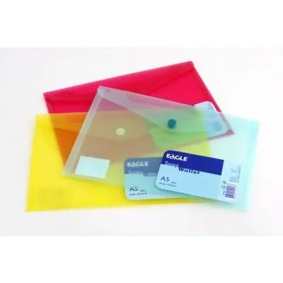 Envelope folder for documents, closed with a snap. Made of durable, translucent plastic in various colors. It comes in A5 format.