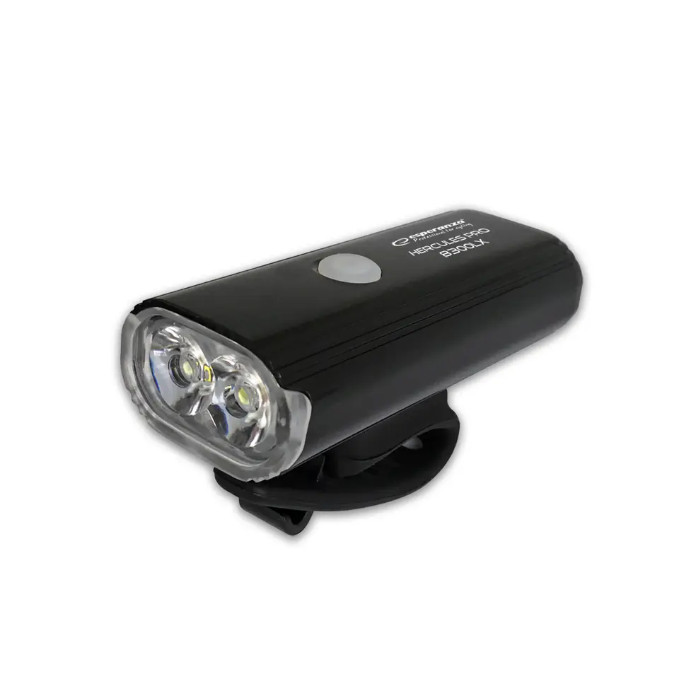 The professional, waterproof Esperanza HERCULES PRO 8300 LX bicycle light has two powerful white CREE T6 LEDs, emitting a strong light of 8300 lx in MAX mode. Super strong light will evenly illuminate the road at a distance of up to 200 m in front of you and is visible from more than 2000 m. Built-in rechargeable batteries, charged via USB, with a very large capacity of 4000 mAh, allow for a long time of use of the lamp (up to 36 hours in SUPER ECONO mode and up to 100 minutes in MAX mode), which is one of the best results with such a high light output. The lamp has built-in eight lighting modes that we change by pressing the power button. The battery indicator indicates both the battery level and the battery level.