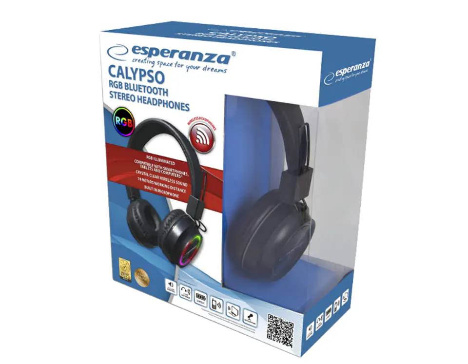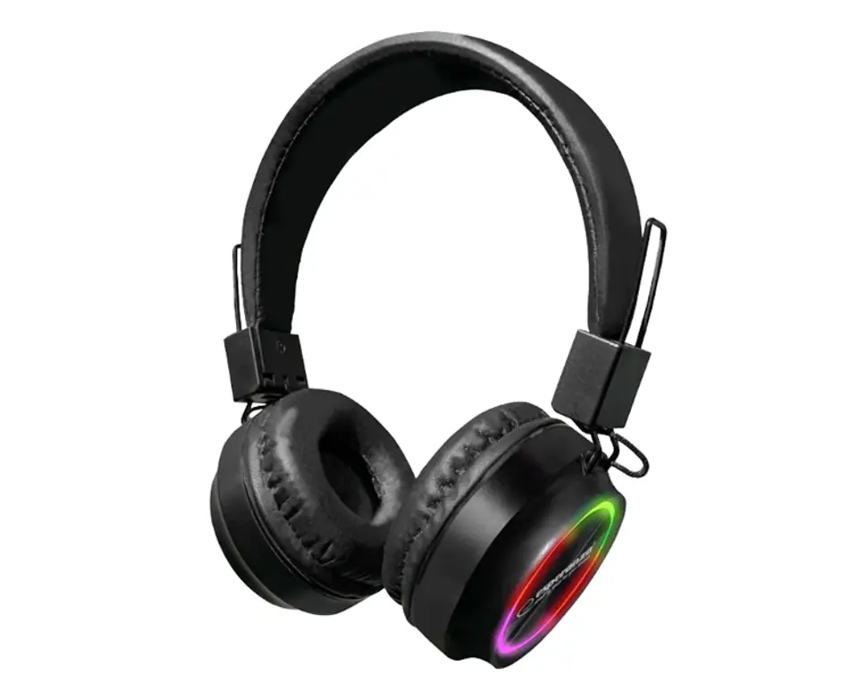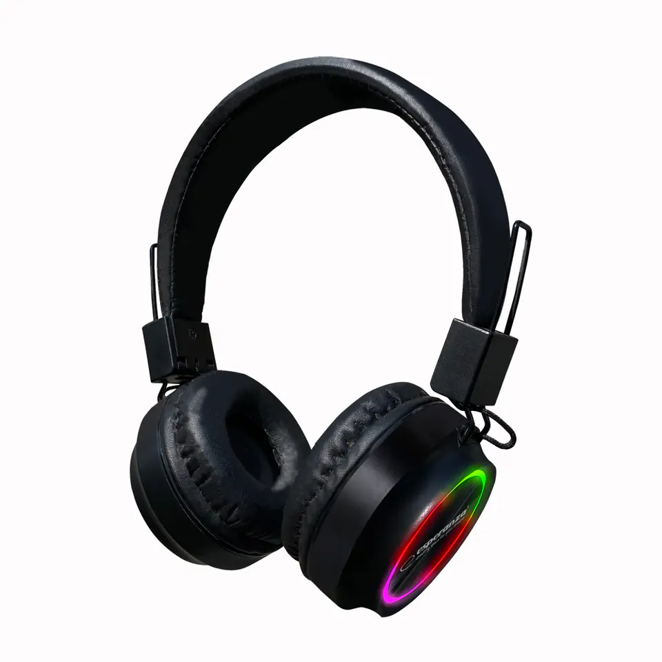 Wysokiej jakości słuchawki stereofoniczne z podświetleniem LED RGB pracujące w technologii Bluetooth v.5.0. Wbudowany mikrofon pozwala na wykonywanie połączeń telefonicznych i rozmawianie przez komunikatory internetowe. Bateria o dużej pojemności umożliwia wykonywanie długich połączeń telefonicznych lub słuchanie ulubionej muzyki. Łatwo regulowany, elastyczny pałąk. Duże, miękkie poduszki nauszne pokryte są skóropodobnym materiałem tłumiącym hałas. Doskonale sprawdzą się podczas długich podróży, w pracy oraz w codziennym użytkowaniu.
