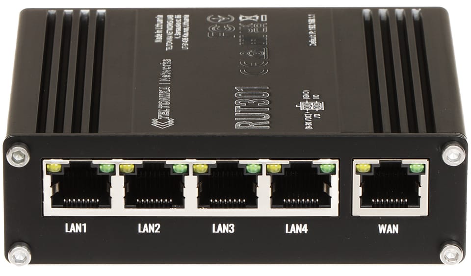 Ethernet Router | RUT301 | No Wi-Fi | 10/100 Mbit/s | Ethernet LAN (RJ-45) ports 5 | Mesh Support No | MU-MiMO No | No mobile broadband