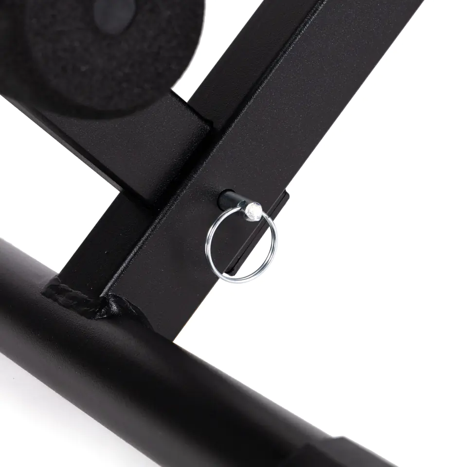 The bench has a special element that locks the legs during exercise, you can easily remove it, just remove the pin and slide the lock out of the frame frame.