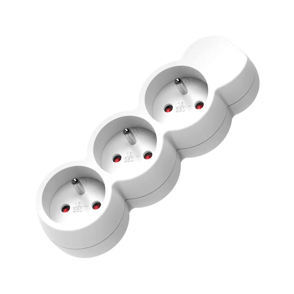 Extension cable 3x 2P+Z, 3m H05VV-F 3x1,0mm?, Imax=10A, white