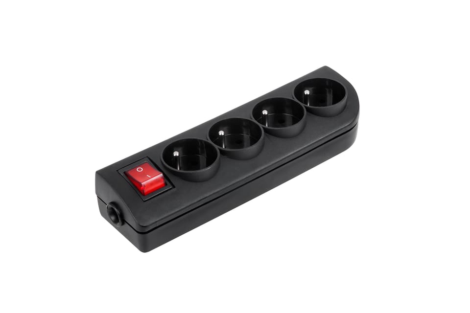 Extension cable socket x 4 with ground and switch black GN-40W-2 (1LL)