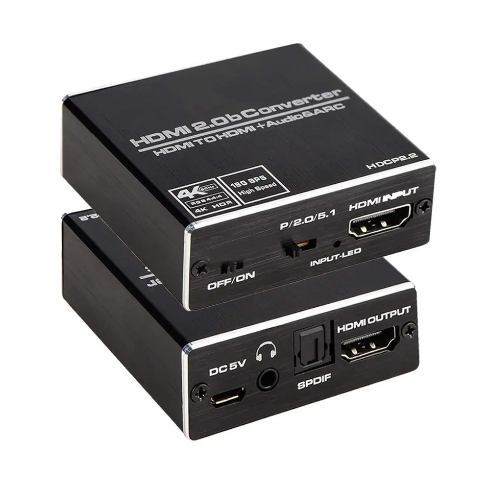 - One HDMI input to one HDMI output + SPDIF digital output (optical) audio (2CH/5.1CH mode) and 3.5mm stereo audio output (2CH mode)
