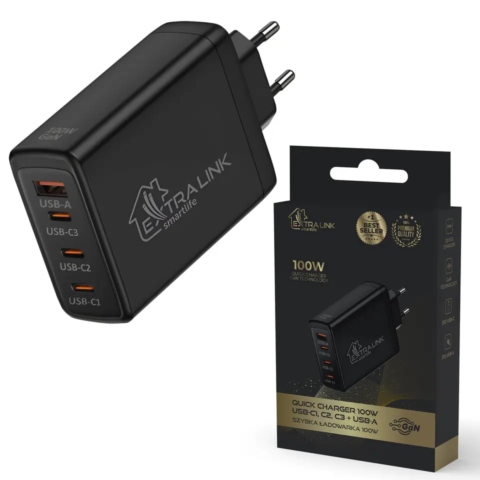 Extralink Smart Life Fast Charger 100W GaN | Charger | 3x USB-C, USB-A, CHARESL01