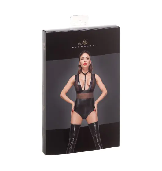 Body powerwetlook with wide straps, tulle inserts and velvety choker.