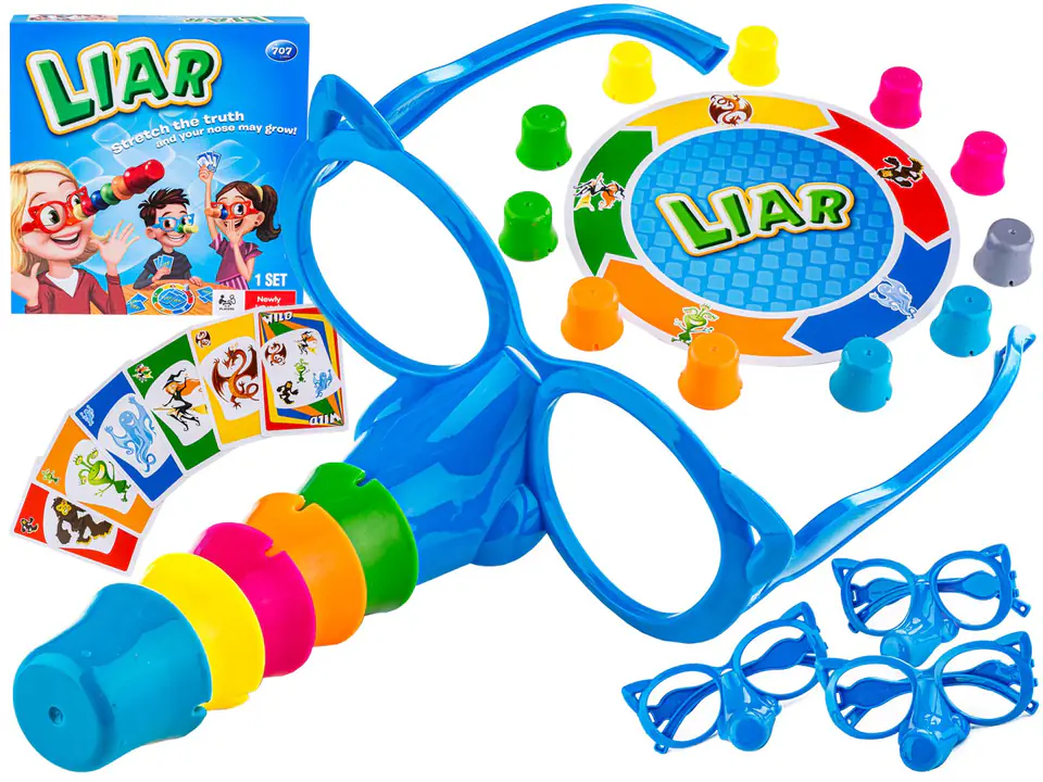 The LIAR game is an educational toy that will show your child that lying does not pay :) If the player lies and is caught doing so - his nose will grow like a fairytale Pinocchio :) The board game is won by the player whose nose is the shortest after the game. So make sure your nose doesn't grow too big!