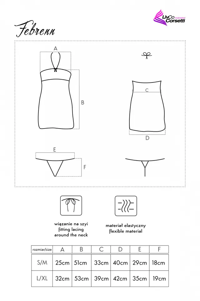 Exclusive nightshirt with thong included. The Febrenn set combines mysterious elegance and an original cut in which you will emphasize the advantages of beauty without showing too much. T-shirt length by the buttocks, tied around the neck with a thin ribbon. A colorful bow is sewn into the neckline. Interestingly sewn bust with welt on the entire width - it will perfectly emphasize even small breasts. T-shirt slightly draped, very nicely fits on the body during movement. Translucent material allows you to see a beautiful feminine waist and tempting fragments of buttocks.