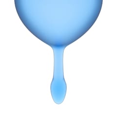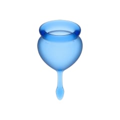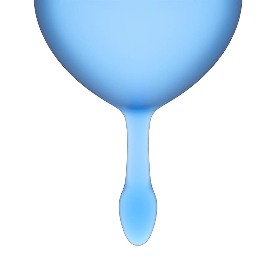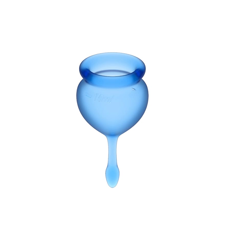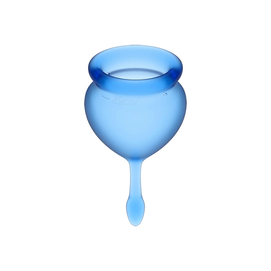 A set of menstrual cups with a capacity of 15 ml and 20 ml. They are made of medical-grade silicone and are reusable, just clean them thoroughly after each use by immersing them in boiling water.