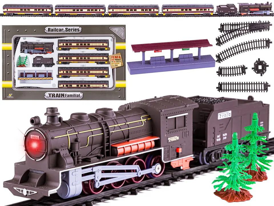 Realistic looking locomotive and as many as 5 passenger and freight cars: