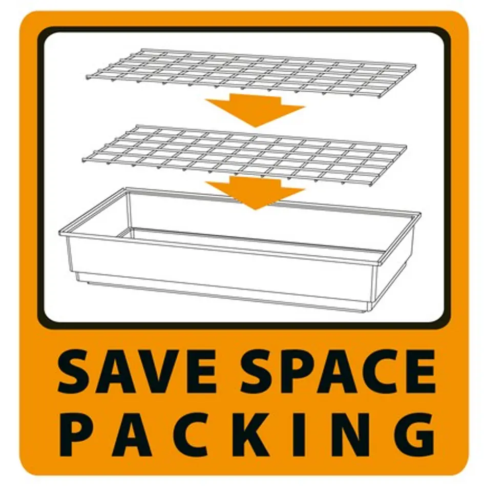The walls of the cage can be removed and stored in the litter box - saving space during transport.